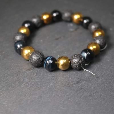 Aquarius 8mm Onyx, Gold Lava Stone, Lava Stone Bracelet (7.5inches)