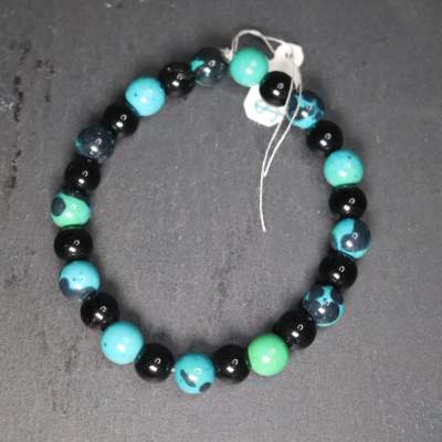 Turquoise and Onyx fleur de Lis bracelet 8mm