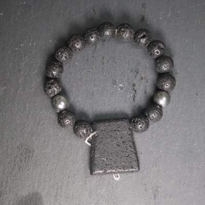 Lava Stone and Dragons Vein Agate Crown Bracelet