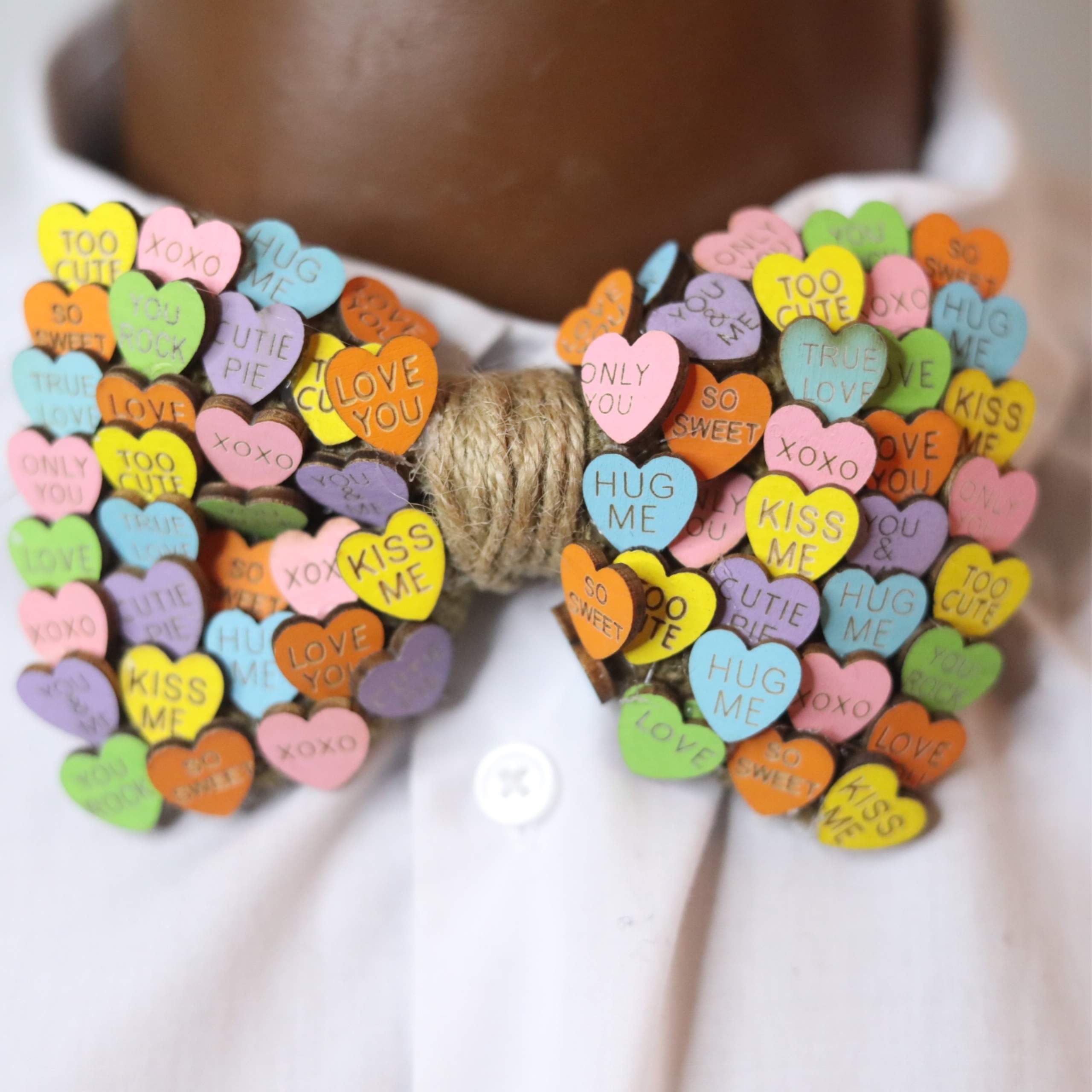 Elevate your style with Cupid. Featuring stylish design and premium quality, these bowties are a versatile accessory that adds a touch of sophistication to any outfit. Crafted with wood hearts, they are perfect for Valentine's Day or any special occasion of love. Upgrade your wardrobe with Cupid today!