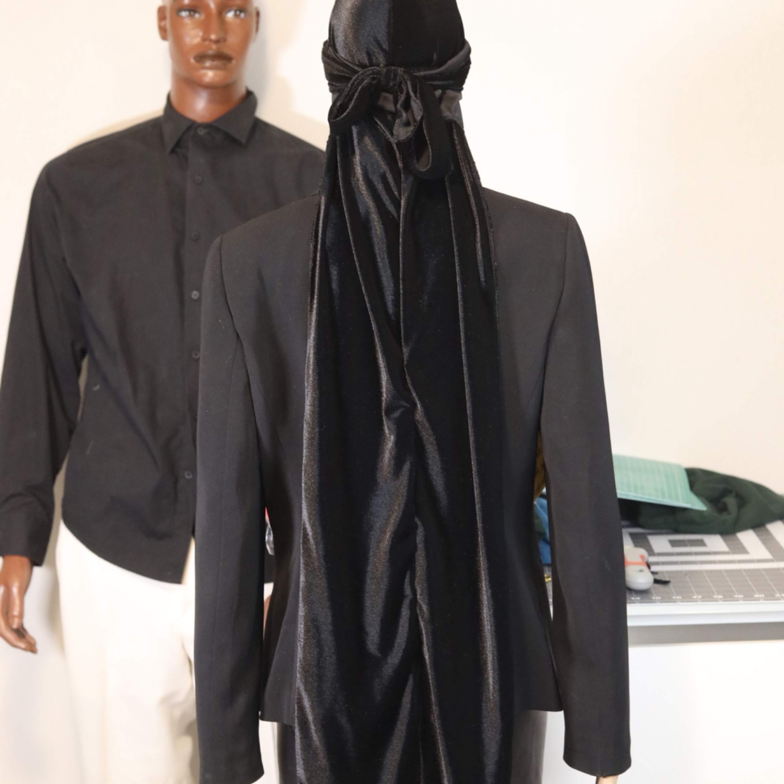 Luxury 48-Inch Velvet Durag – Deep Black Edition